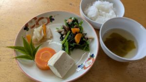 ごはん ほうれん草としめじのお浸し 木綿豆腐と人参の煮物 割干し大根煮 味噌汁