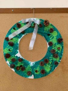 みんなの手形を押して、リースを作りました