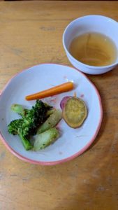 ふかしいも 人参煮 ブロッコリーの胡麻和え もやしの味噌汁