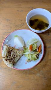 分付き米 キャベツと小松菜のおかか和え おから入り豆腐ハンバーグ 大根のべったら漬け(麹甘酒) 豚汁
