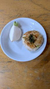 お好み焼き 焼きかぶ 白菜煮 わかめの味噌汁