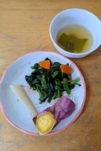 焼き芋 大根煮 ほうれん草の和え物 わかめの味噌汁