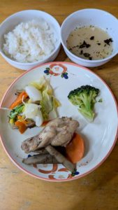 ごはん 白菜と水菜の手作りポン酢和え 手羽元とごぼうの味噌煮 ブロッコリー 呉汁