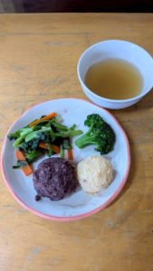 青のりごはん ポテトサラダツリー ハンバーグ かぶのオーブン焼き 星の人参の味噌汁
