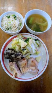 ごはん 白菜のポン酢和え 鶏肉の醤油麹焼き 粉吹き芋 玉ねぎの味噌汁