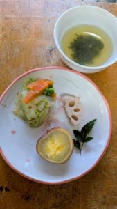 大根餅 人参煮 キャベツのおかか煮 しいたけの味噌汁