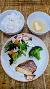 分付き米 お野菜ゴロゴロ白和え ぶりの醤油麹焼き 白菜のゆず漬け 玉ねぎとしめじの味噌汁