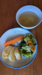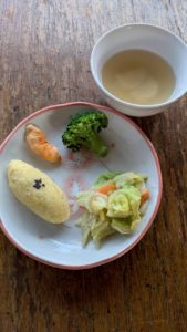 スィートポテト ブロッコリー キャベツのごま和え 長芋の味噌汁