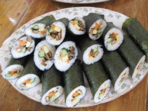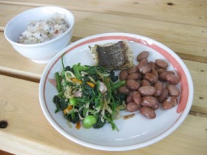 わかめは年長さんが、海で採ってきたものを干して、おにぎりに巻いていただきました。