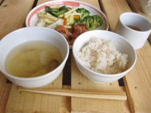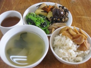 味噌汁(えのきだけ、小松菜、醤油、極楽塩)