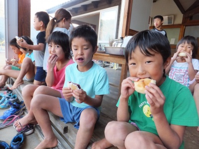 ジャムが出来上がると、次はクラスの子が持ってきてくれたイカを焼きました。