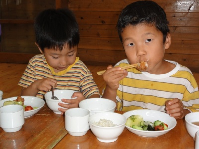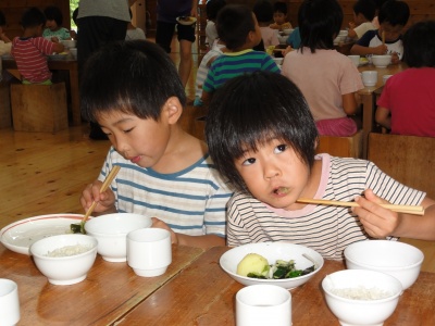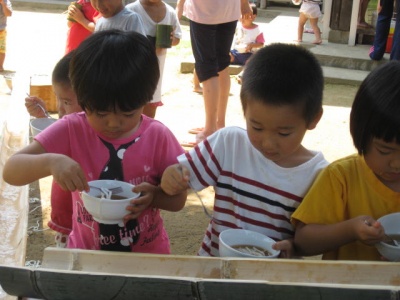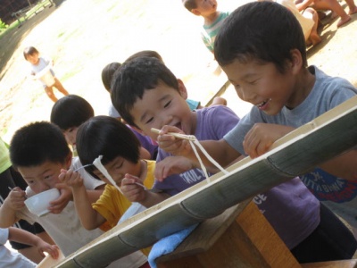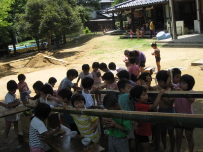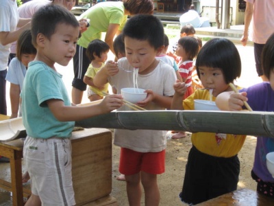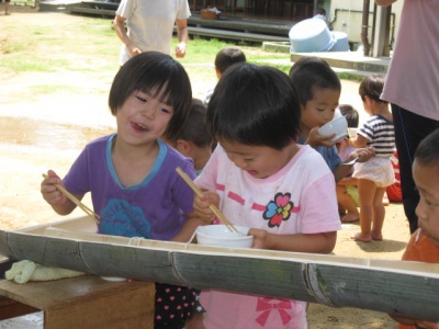 あいにくの雨で予定していた流しそうめんは出来ませんでしたが、七夕をイメージしたそうめんを見て「おー!!」っと歓声があがりました。