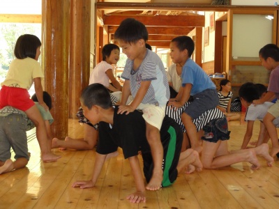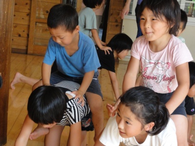 夏の学童が始まり、今日は一緒にリズムをしました。